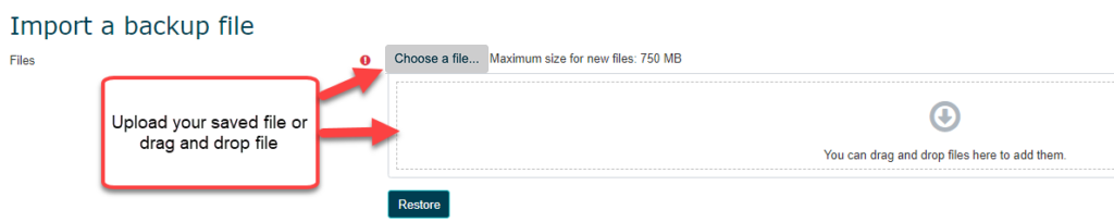 After you have created a backup file of your course in Moodle, the need may arise to restore your course back into Moodle. Restoring a course is a similar process to creating a backup.